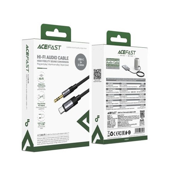 Кабель AUX "3,5 мм" Jack - Type-C Acefast J11 (оплетка нейлон) (1 м) Черный