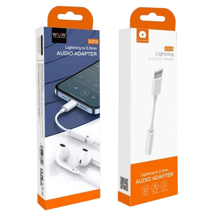 Адаптер Lightning - 3.5 jack WUW X210 (только музыка) Белый