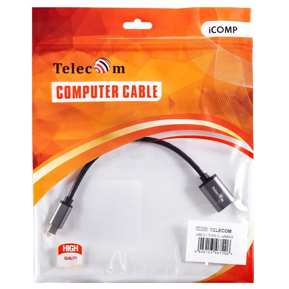 Кабель-переходник Type-C(M)--> USB 3.0 Af , OTG, 1,5A , 5,0Gbps , Alum grey 0,2m TELECOM (TC409M) (1/504)