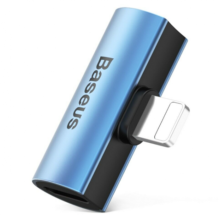 Переходник 8 pin - 2x 8 pin(f) Baseus L46, плоский, пластик, цвет: синий (1/50)