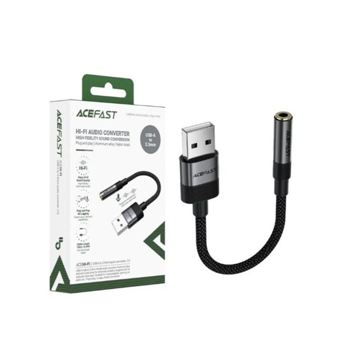 Адаптер USB - "3,5 мм" Jack Acefast J13 (оплетка нейлон) Черный