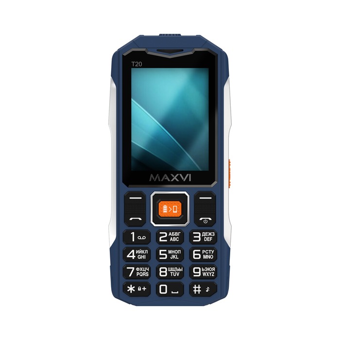 Mобильный телефон с диагональю экрана 2,4”, усиленными боковыми металлическими вставками и ёмким аккумулятором 2000 mAh. Maxvi T20 оснащён функцией Powerbank, позволяющей превратить Ваш телефон в источник энергии для других устройств. Данный аппарат разработан с учётом требований 76-ФЗ для военнослужащих ВС РФ (отсутствие доступа в Интернет, дополнительного флеш-накопителя, фотокамеры, диктофона, Bluetooth, MMS).
