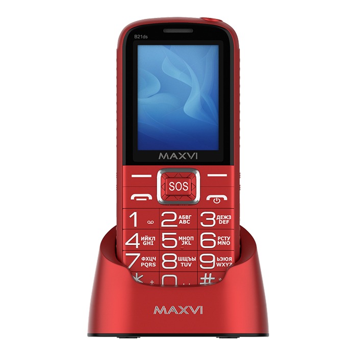 Описание Мобильный телефон MAXVI B21 ds с док станцией Red (2.4"/1,3МП/2300mAh)