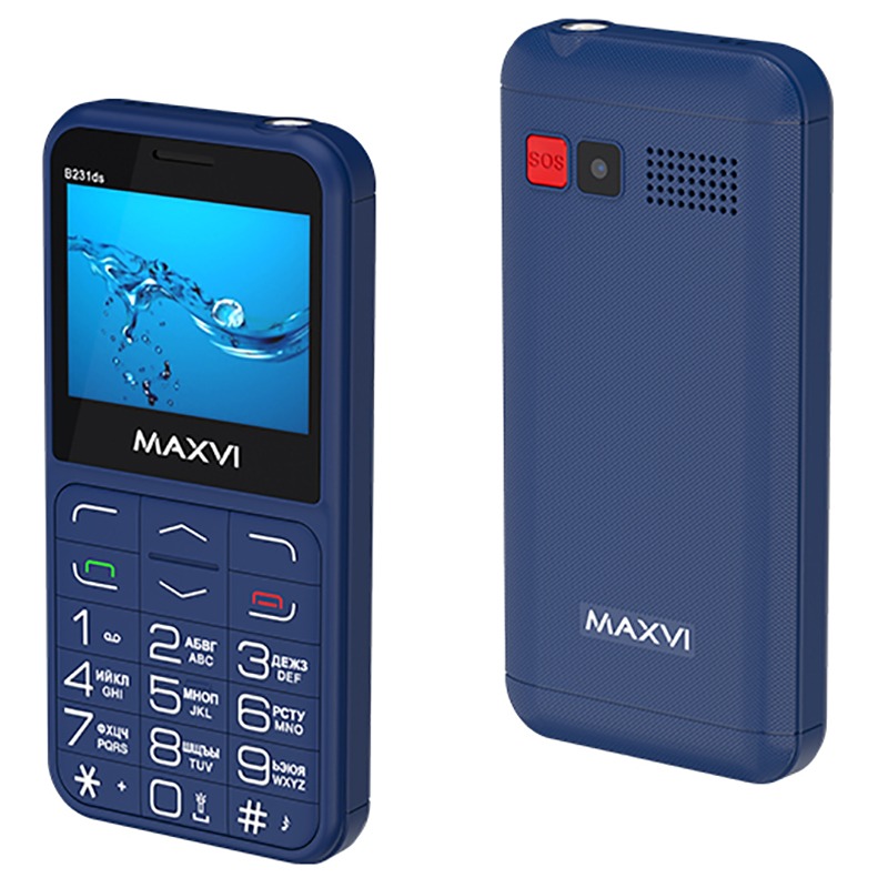 Описание Мобильный телефон MAXVI B231 ds с док станцией Blue (2,31"/0,3МП/1400mAh)