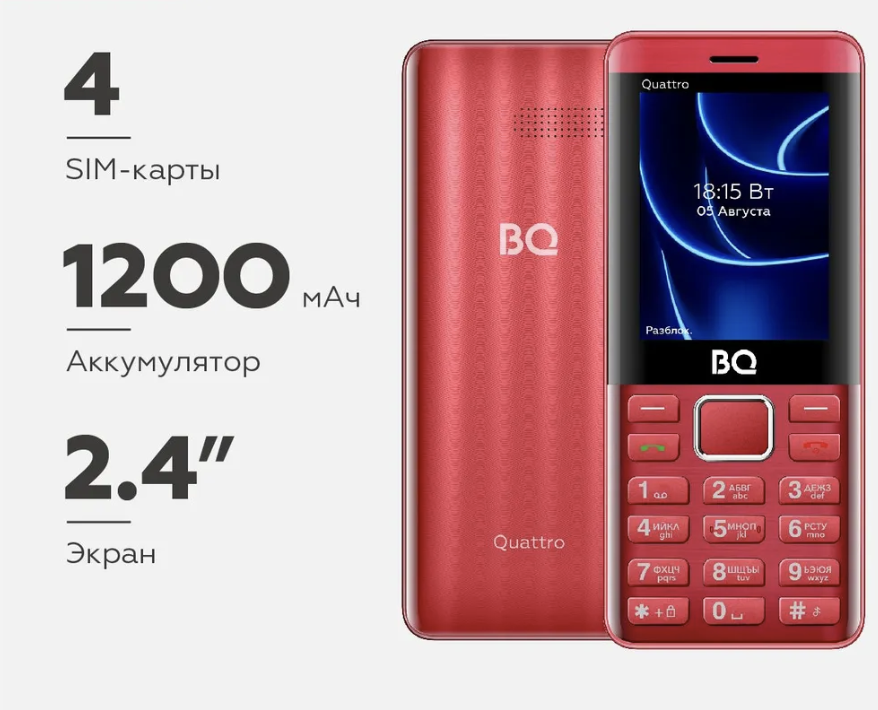 Описание Мобильный телефон BQ 2453 Quattro красный (2,4"/1200mAh)