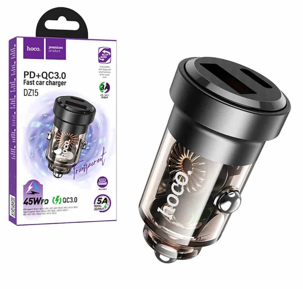 Адаптер автомобильный HOCO DZ15 PD 45W + QC 3.0 (черный)