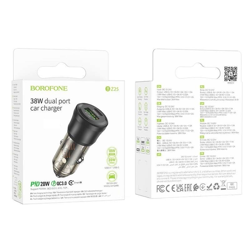 Адаптер автомобильный BOROFONE BZ25 PD 20W +QC3.0 (черный)