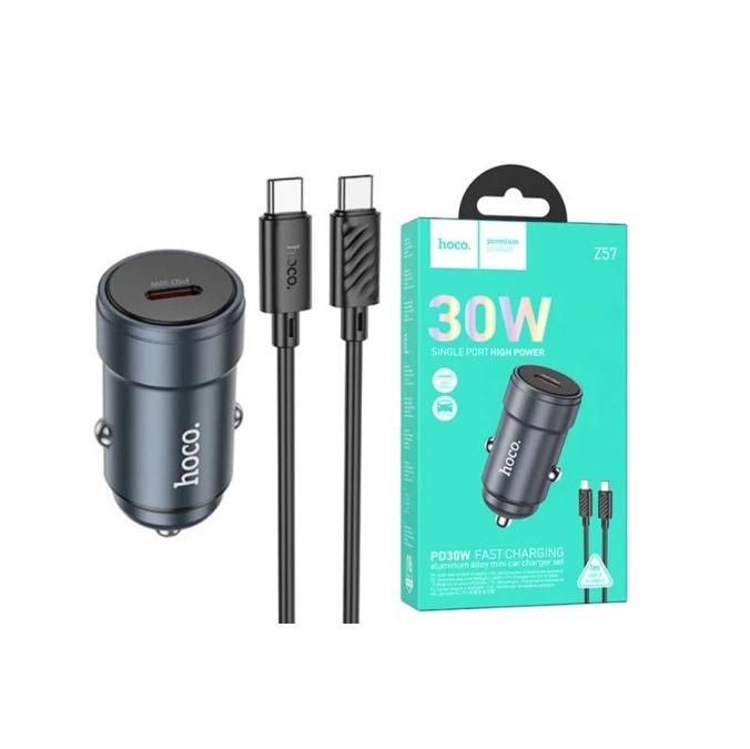 Автомобильное ЗУ HOCO Z57 + кабель Type-С/Type-C (PD 30W) серый металл