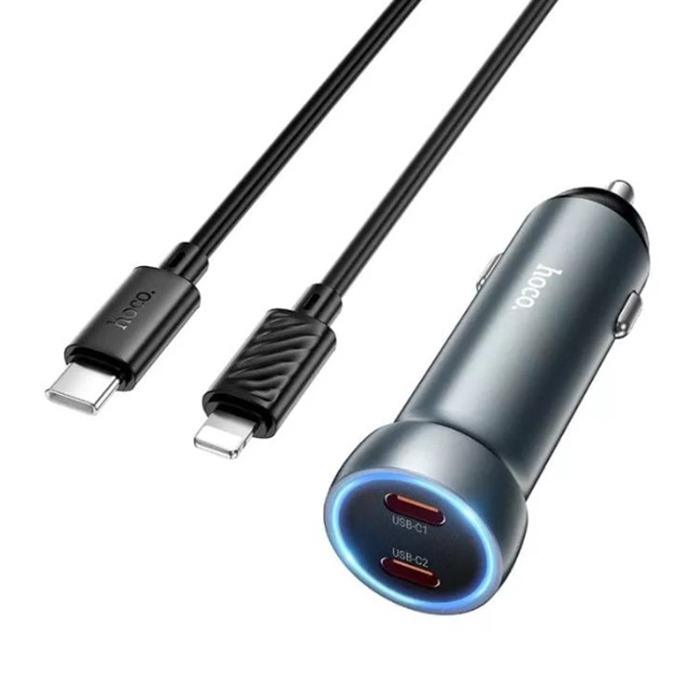 Автомобильное ЗУ HOCO Z54B + кабель Lightning/Type-C (2PD 60W) серый металл