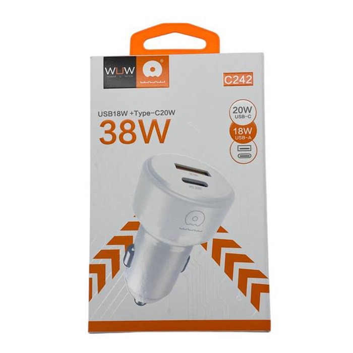 Автомобильное зарядное устройство Type-C/USB WUW C242 (1Type-C PD 20W + 1USB 18W QC3.0) Черный