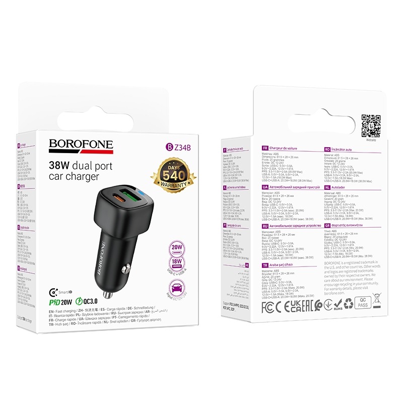 Адаптер автомобильный BOROFONE BZ34B 38W (PD20W+QC3.0) черный