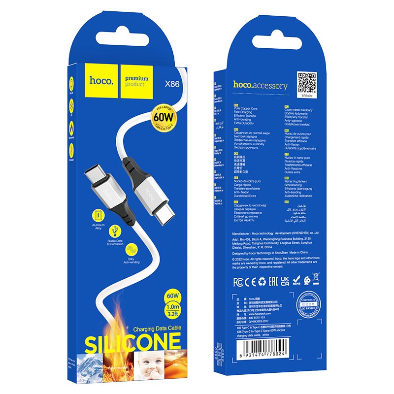 Кабель Type-C-Type-C Hoco X86 (3А/1m/60W) белый