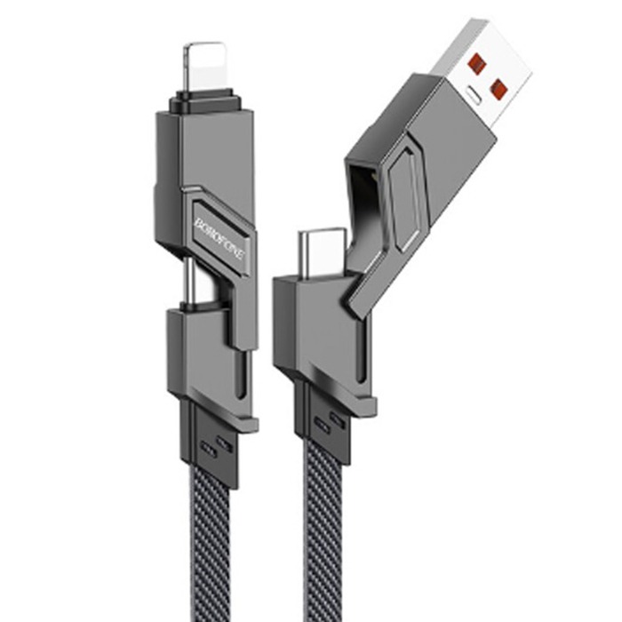 Кабель USB BOROFONE (BU43) Triumph 4-в-1 (USB/Type-C to iP/Type-C) (1,2м) (темно-серый)