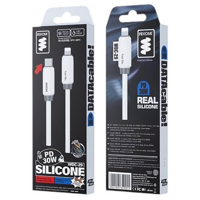 Кабель Type-C - Lightning (для iPhone) WEKOME WDC-29 1.0m PD 30W (Незамерзающий) Белый