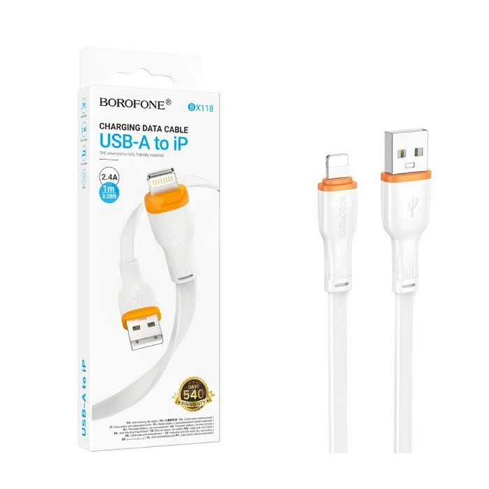 Кабель USB - Lightning Borofone BX118 (2.4A, плоский) Белый