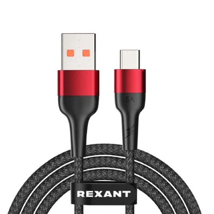 USB кабель шт.USB (A) - шт.Type-C 1м, 5A, 50Вт, в чёрной нейлоновой оплетке "Rexant"