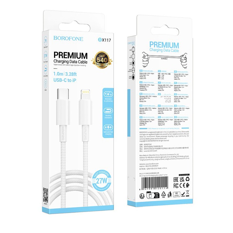 Кабель Lightning -TypeC BOROFONE BX117 PD 27W (белый) 1м