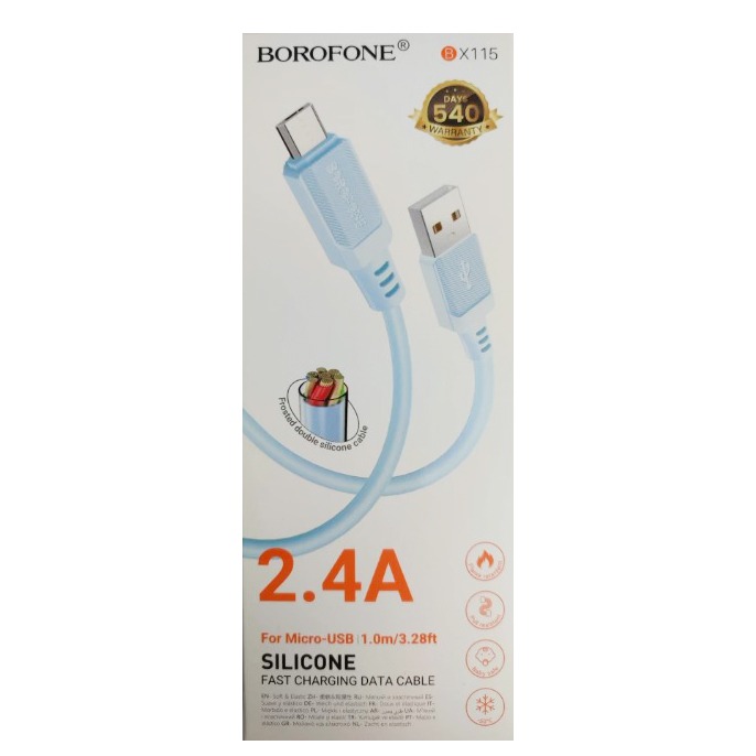 Кабель USB - Micro USB BOROFONE BX115 (2.4A/1m/силиконовый) синий