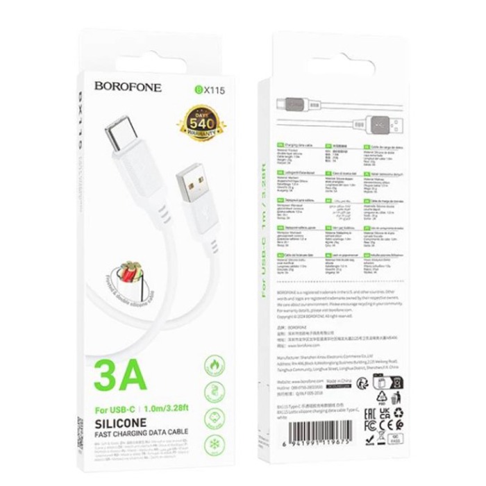 Кабель USB - Type-C BOROFONE BX115 (3A/1m/силиконовый) белый