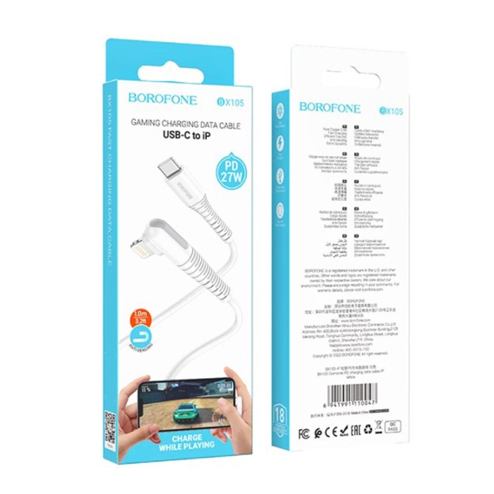 Кабель Lightning - Type-C BOROFONE BX105 (27W/1m/Г-образный) белый