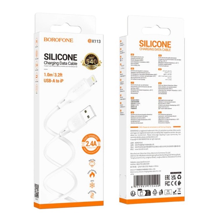 Кабель USB - Apple Lightning BOROFONE BX113 (2.4A/1m) белый