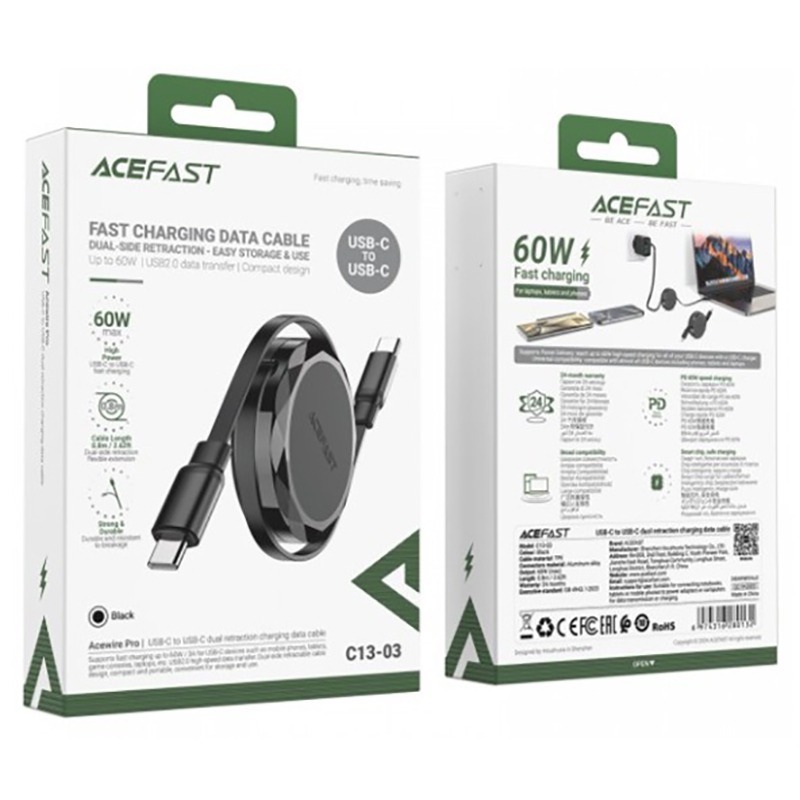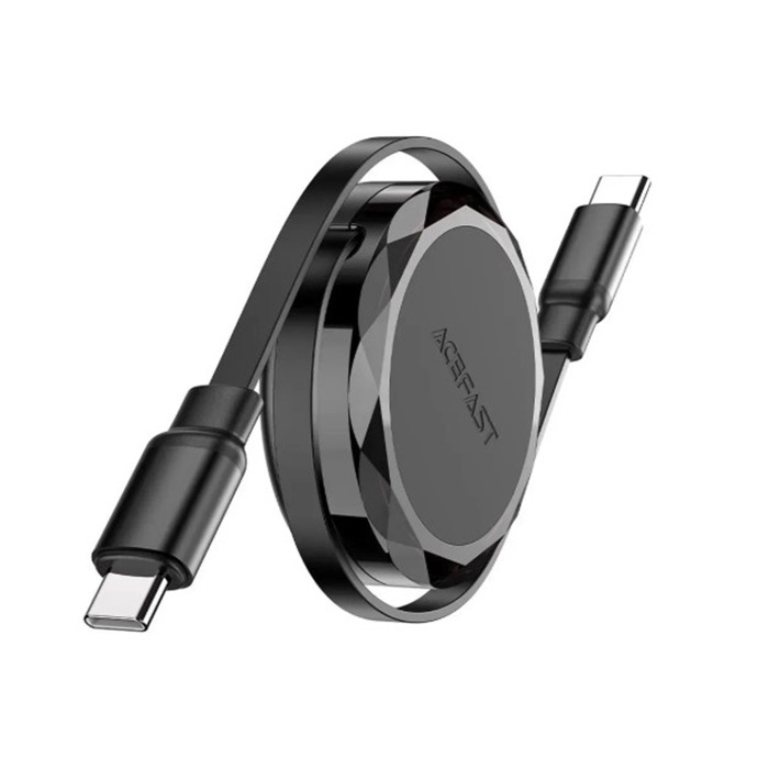 Кабель Type-C - Type-C Acefast С13-03 (3A, 60W, PD, 0.8 м, двойное втягивание) Черный
