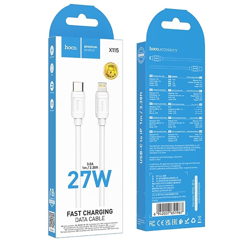 Кабель USB-C Hoco X115 27W PD Type-C/Lighting белый 1м