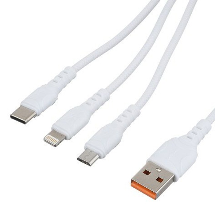 USB кабель 3в1 (Lightning, microUSB, Type-C) 1,0м, белый GP05-3-1 "GoPower"