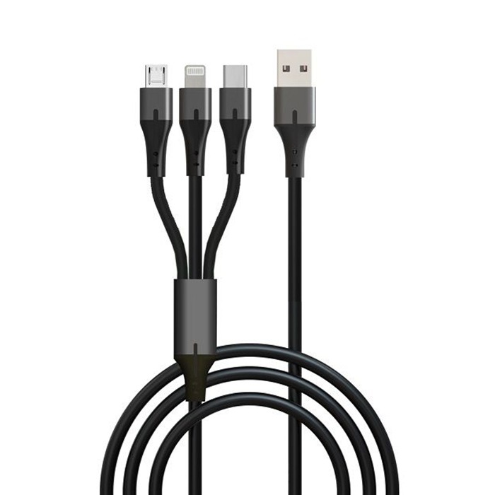 USB кабель 3в1 (Lightning, microUSB, Type-C) 1,2м, чёрный GP21-3-1.2M "GoPower"