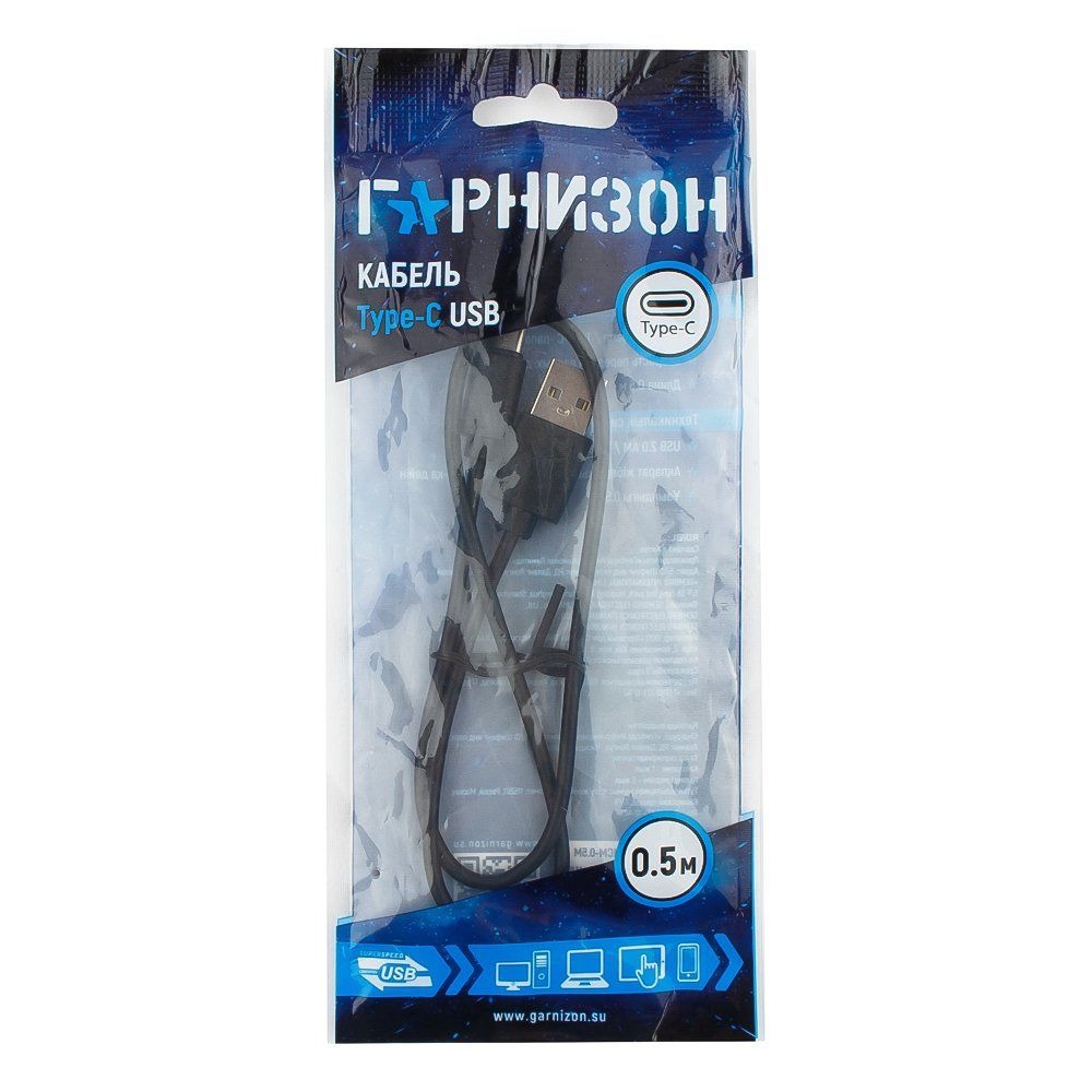 USB кабель шт.USB (A) - шт.Type-C "Гарнизон" 0,5м, медь, чёрный, пакет