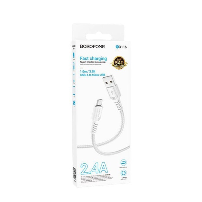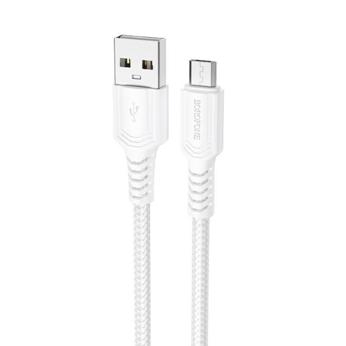 Кабель USB - микро USB Borofone BX116 Certain, 1.0м, 2.4A, ткань, цвет: белый (1/360)