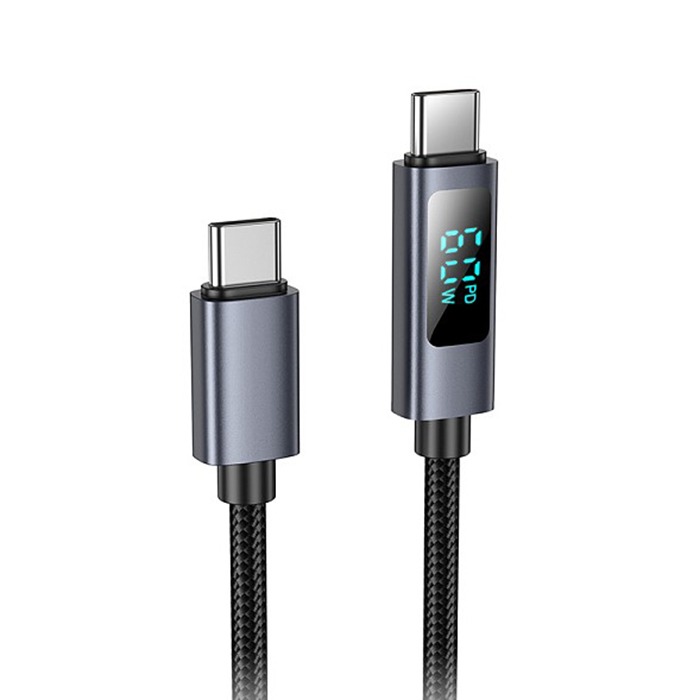 Кабель Type-C - Type-C HOCO X112 Favor, 1м, нейлон, дисплей, 3.0A, PD60W, цвет: чёрный (1/31/310)