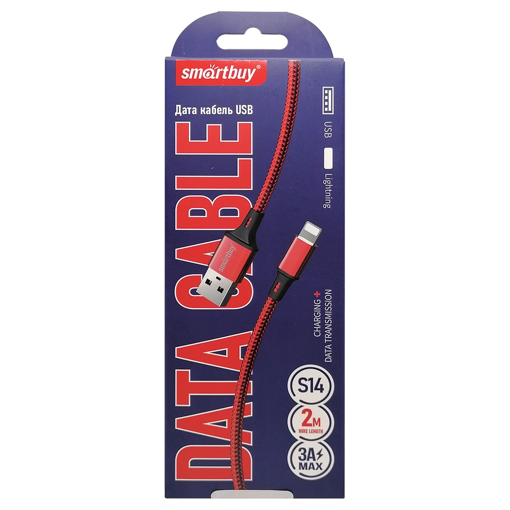 Кабель для зарядки и передачи данных S14 Lightning красн./черн., 3 А, 2 м, Smartbuy (iK-522-S14rb)
