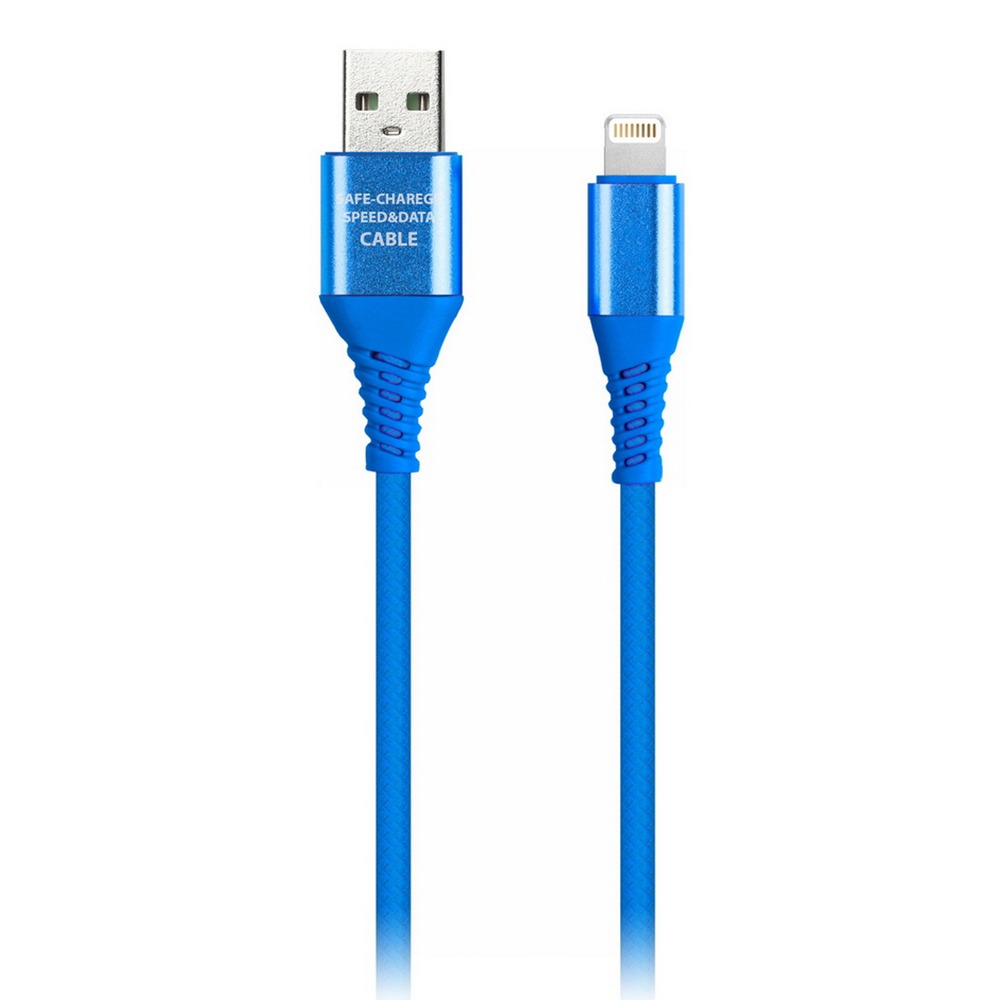 Дата-кабель Smartbuy 8pin кабель в рез. оплет. Gear, 1м. мет.након., <2А, син.(iK-512ERGbox blue)/50