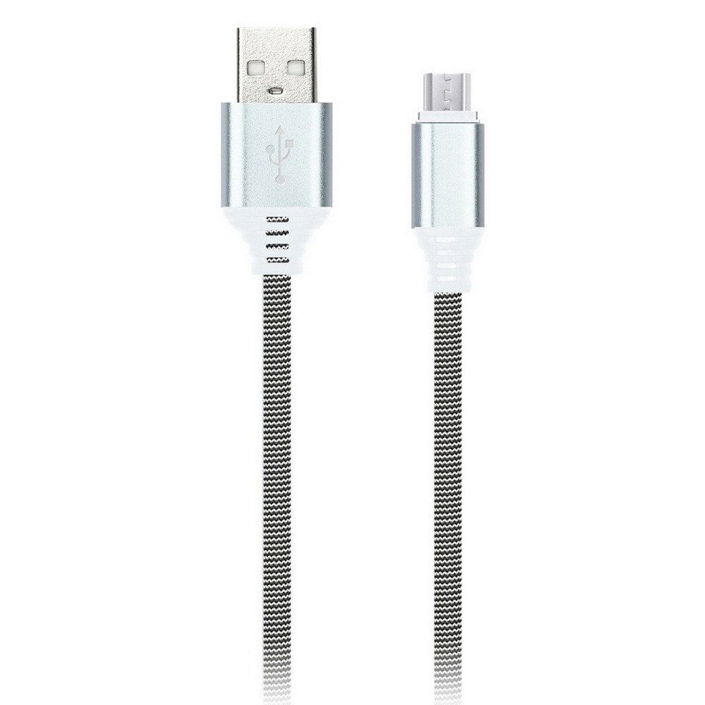 Дата-кабель Smartbuy MicroUSB кабель в нейлон. оплетке Socks, 1 м., <2А, черно-бел(iK-12NS black)