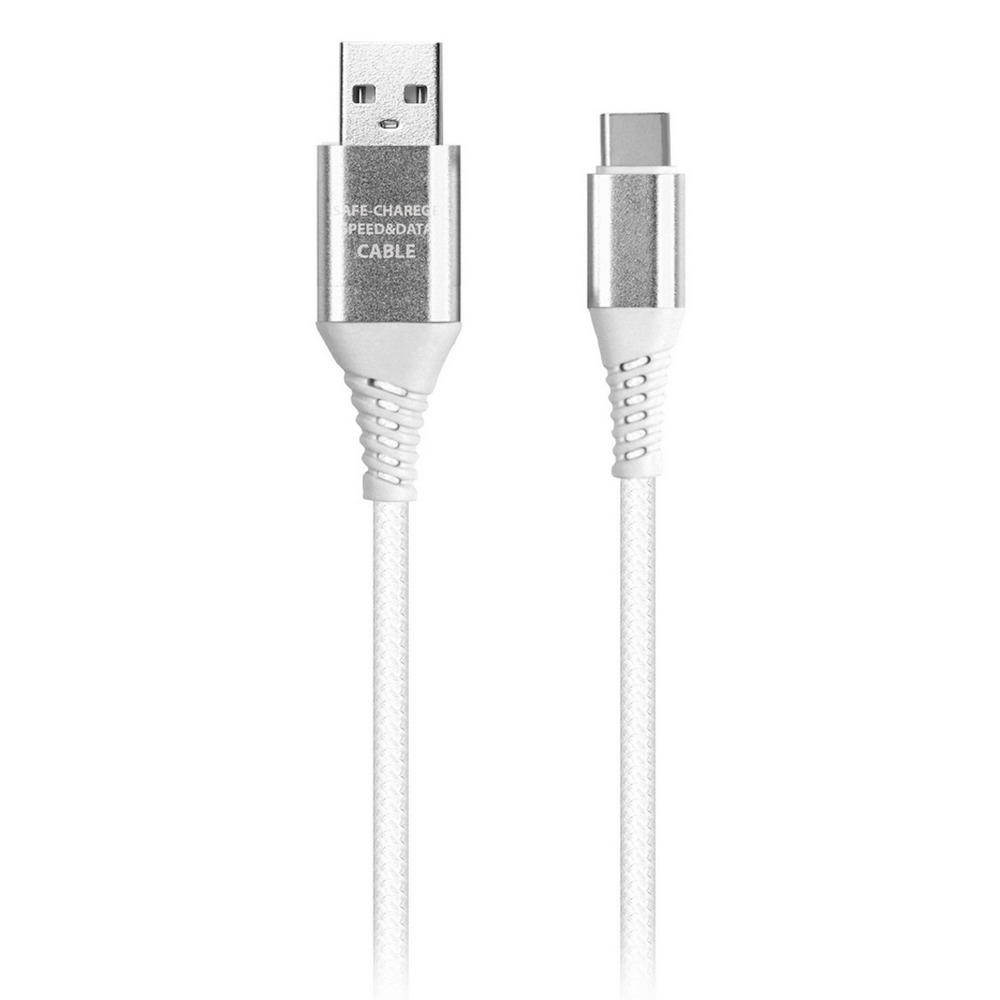 Дата-кабель Smartbuy Type C кабель в рез.оплет. Gear, 1м. мет.након.,<2А, бел.(iK-3112ERG white)/100