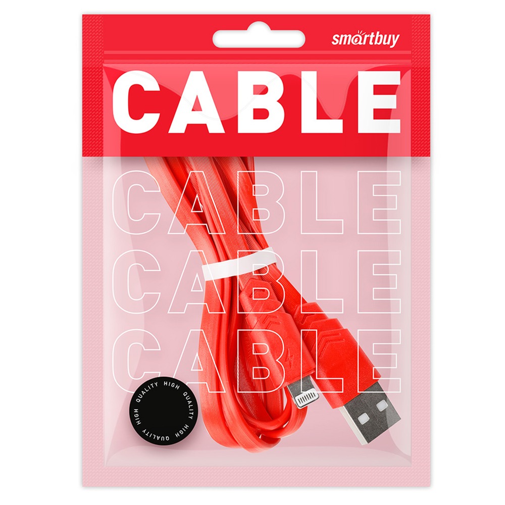 Дата-кабель Smartbuy USB - 8-pin для Apple, плоский, длина 1 м, красный (iK-512r red)/100