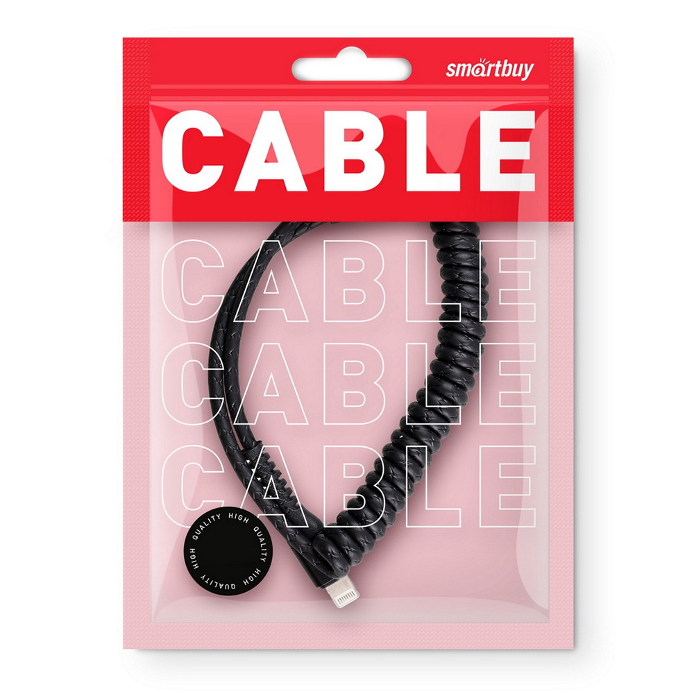 Дата-кабель Smartbuy USB - 8-pin для Apple, спиральный, длина 1,0 м, черный (iK-512sp black)/500