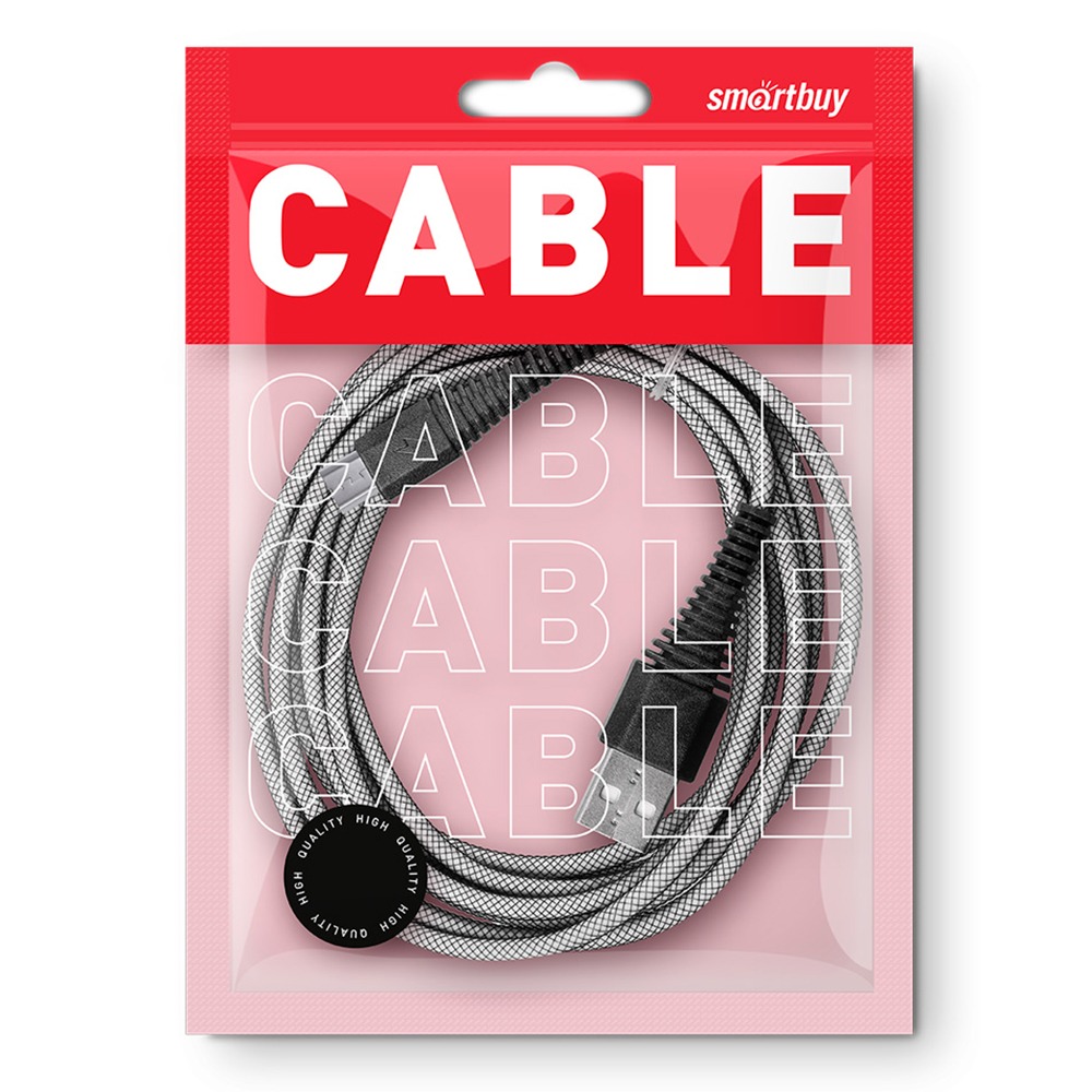 Дата-кабель Smartbuy USB - micro USB, "карбон", экстрапрочный, 1.0 м, до 2А, белый (iK-10n-2 white)