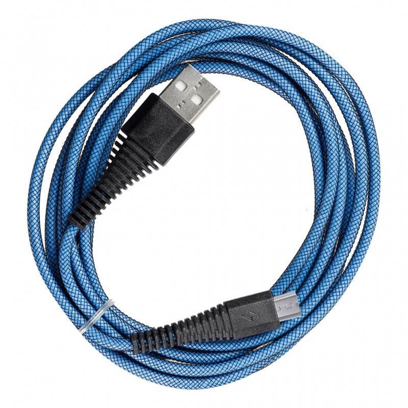 Дата-кабель Smartbuy USB - micro USB, "карбон", экстрапрочный, 1.0 м, до 2А, синий (iK-10n-2 blue)