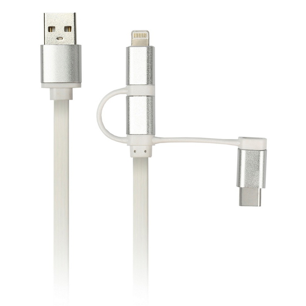 Дата-кабель Smartbuy USB - 3 в 1 Micro+Type-C+8 pin, длина 1 м, белый (iK-312 white)