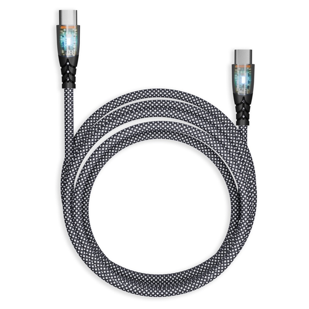 Кабель для зарядки и передачи данных, прозрачн.након. TYPE C - TYPE C, 3А,нейл., черн,1 м, Smartbuy