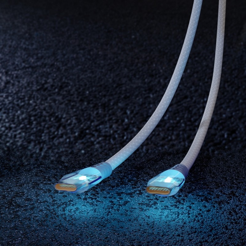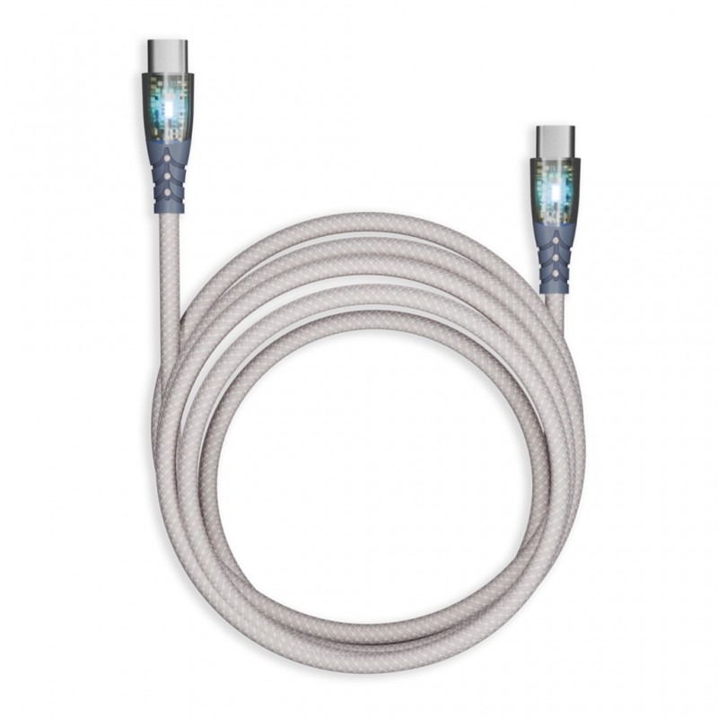 Кабель для зарядки и передачи данных, прозрачн.након. TYPE C - TYPE C, 3А,нейл.серый ,1 м, Smartbuy