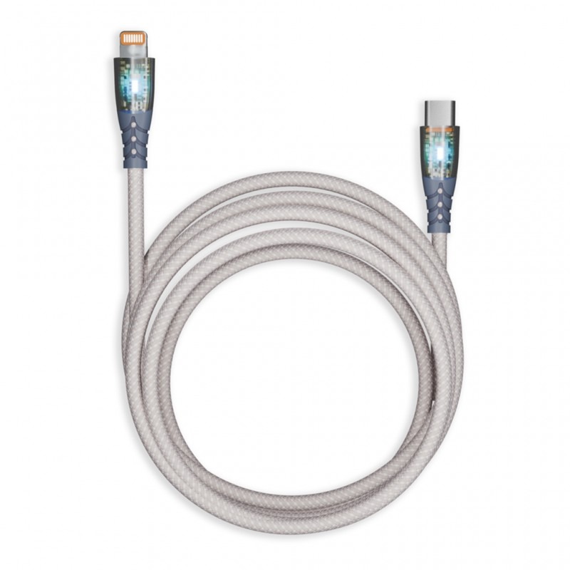 Кабель для зарядки и передачи, прозрачн.наконечники TYPE C - LIGHTNING серый,3А,нейл.,1 м, Smartbuy