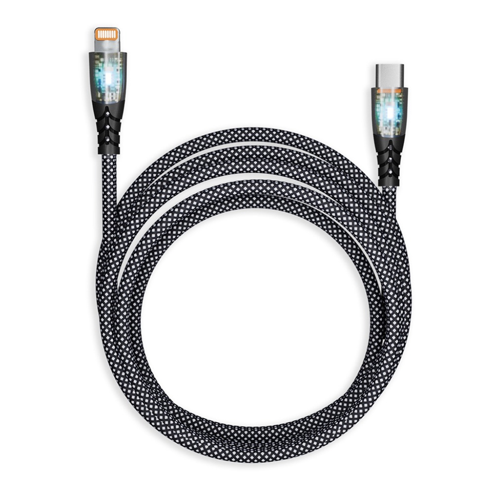 Кабель для зарядки и передачи, прозрачн.наконечники TYPE C - LIGHTNING черн.,3А,нейл.,1 м, Smartbuy