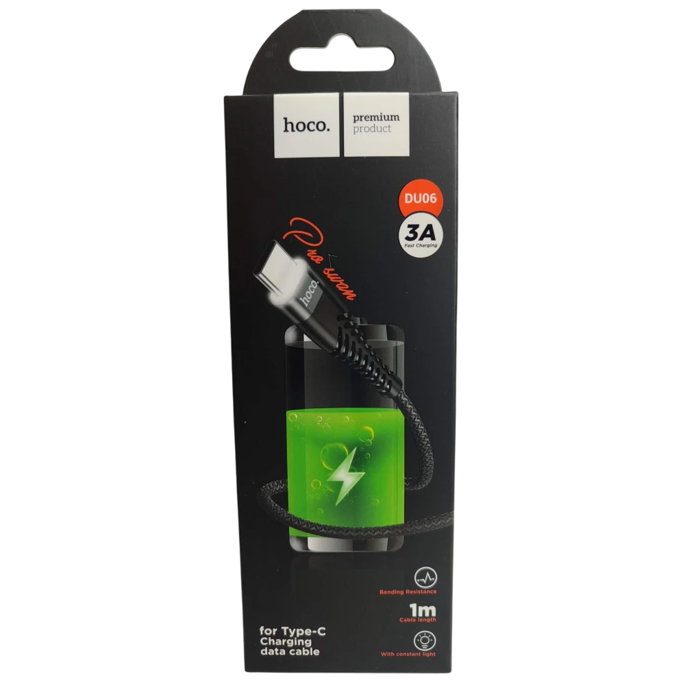 Кабель USB - Type-C HOCO DU06 (3A/1m/текстиль) черный