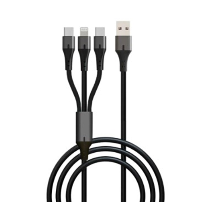 USB кабель 3в1 (Lightning,шт.USB -Type-C, Type-C) 1,2м, чёрный GP21-3-1-1.2M "GoPower"