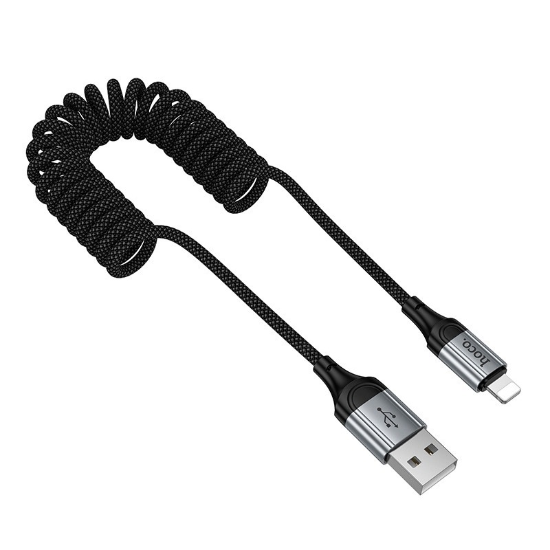 Кабель USB - Lightning Hoco X121 (2.4А, 1.5 м, пружина) Черный