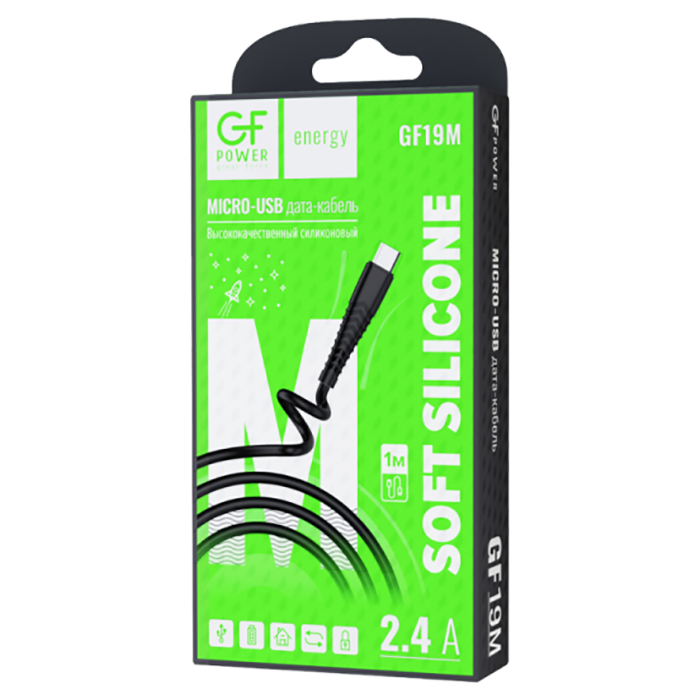 Кабель GFPower 19M USB (m)-microUSB (m) 1м 2.4A силикон черный (1/120/480)