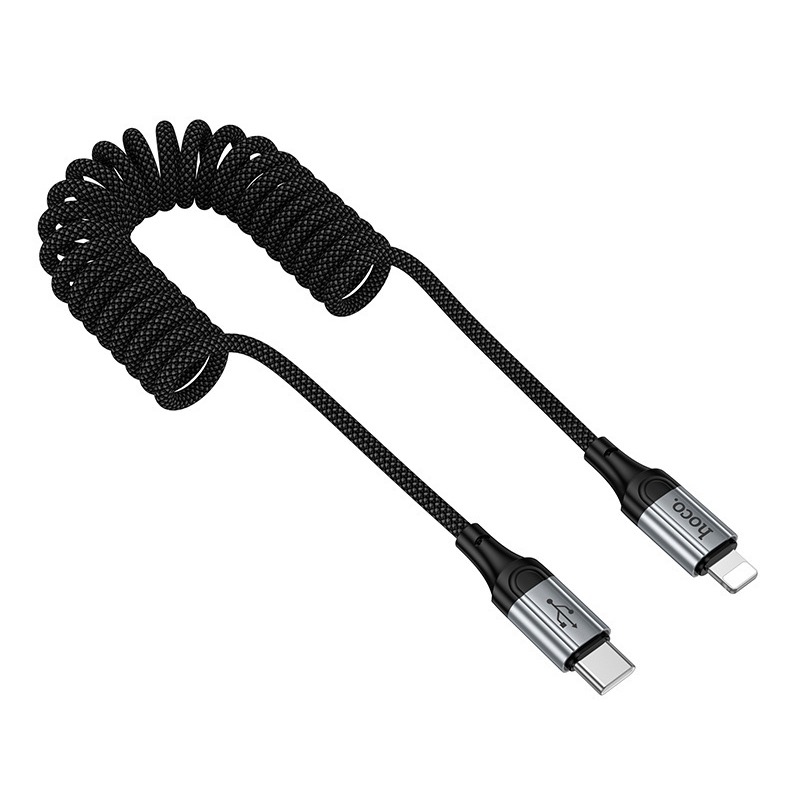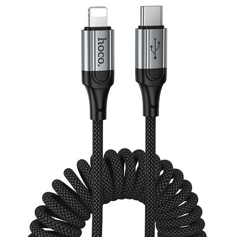 Кабель Type-C - Lightning Hoco X121 (3A, 27W, PD, 1.5 м, пружина) Черный
